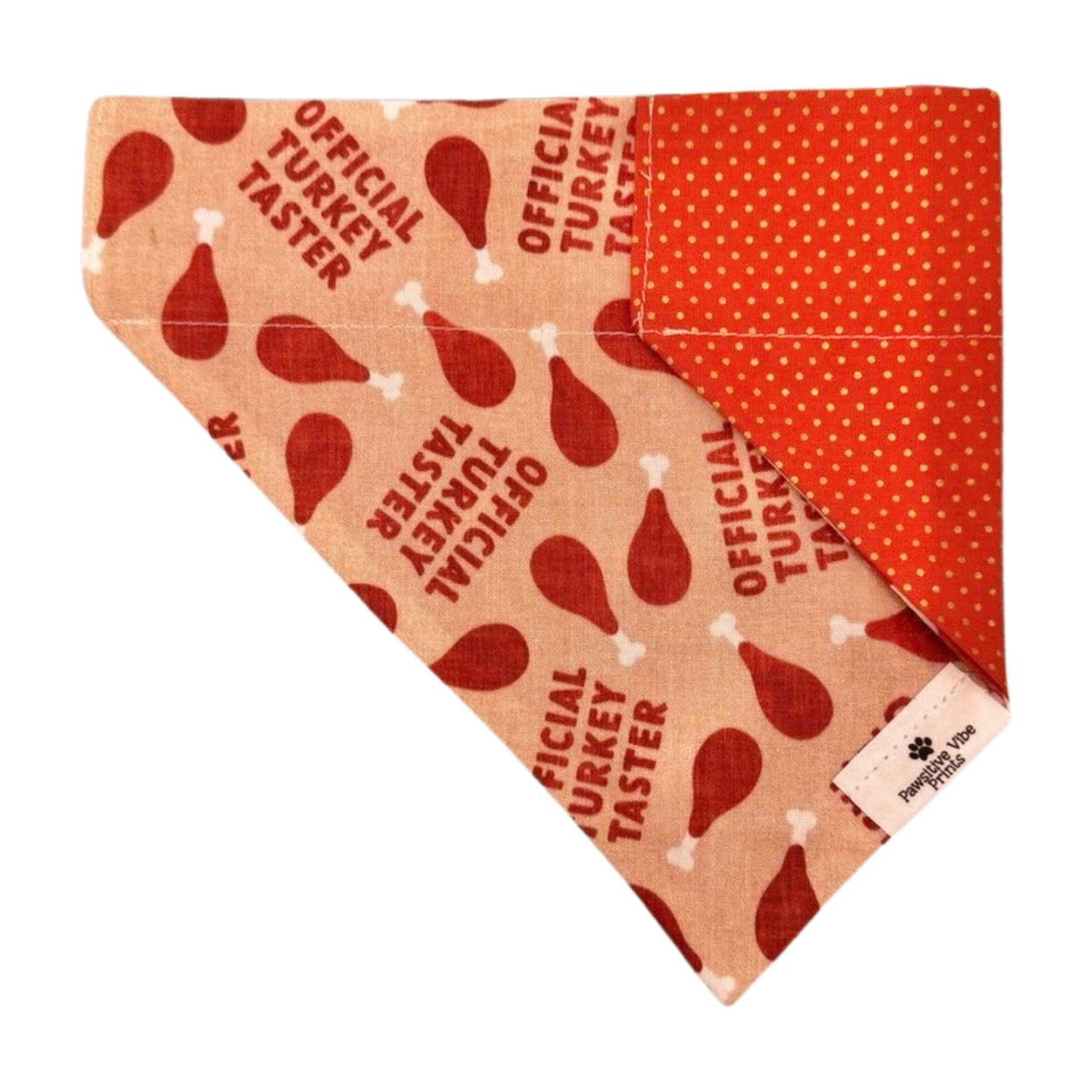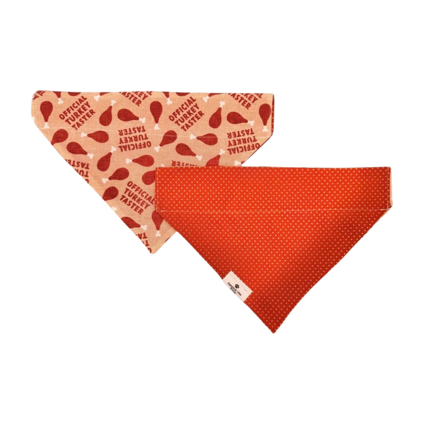 Over the collar design makes it so the bandana stays on as long as the collar is on. This reversible bandana is pawfect for your pets wardrobe!