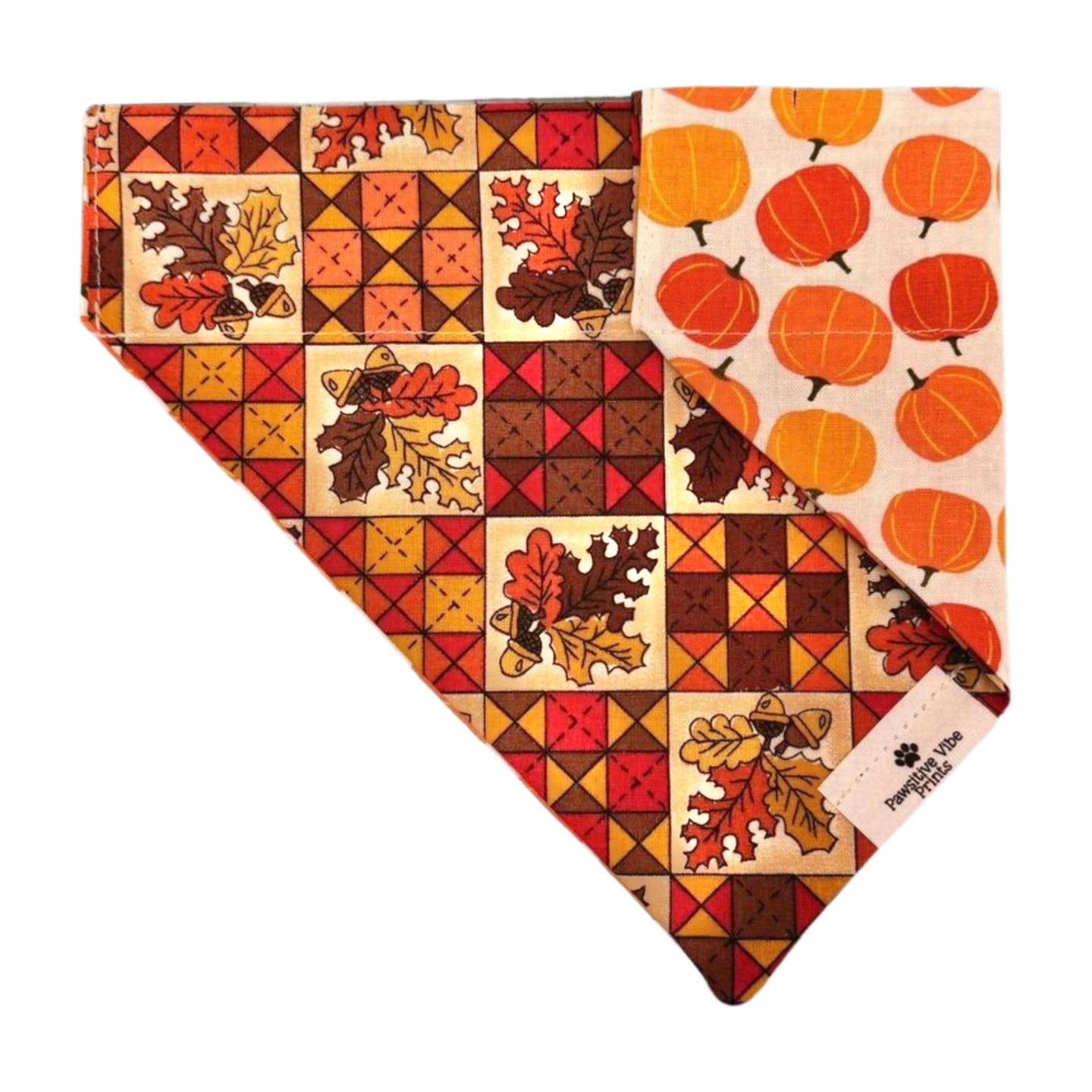 Over the collar design makes it so the bandana stays on as long as the collar is on. This reversible bandana is pawfect for your pets wardrobe!