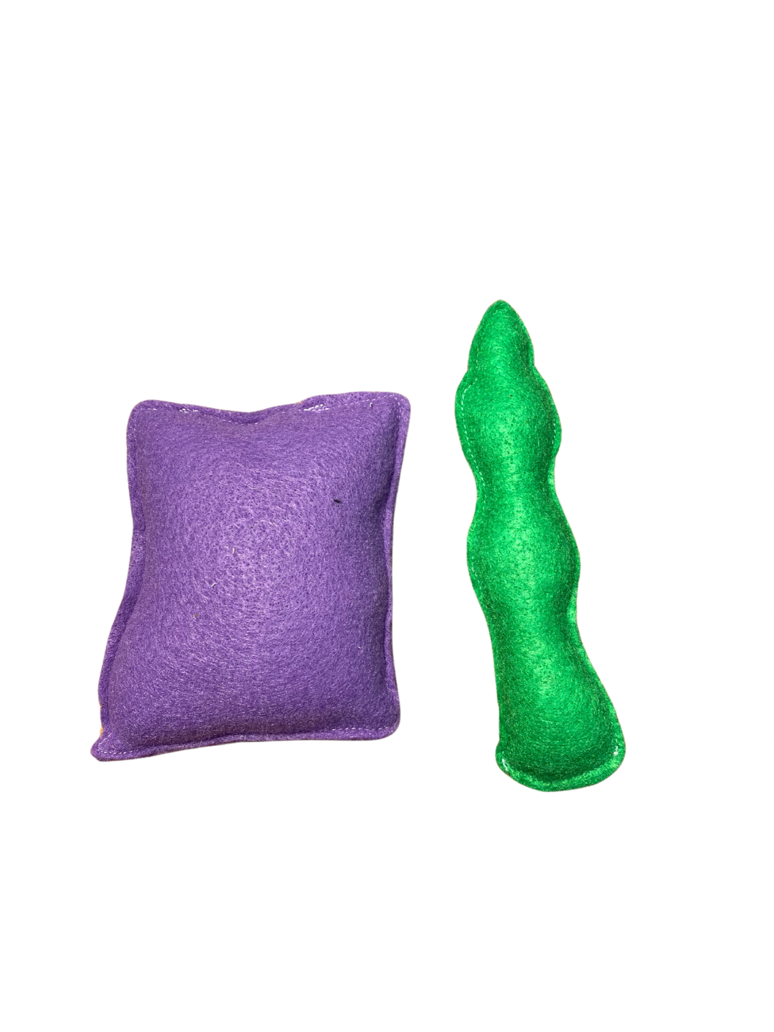 • made from felt, and filled with polyfil stuffing and catnip/ silver-vine mix